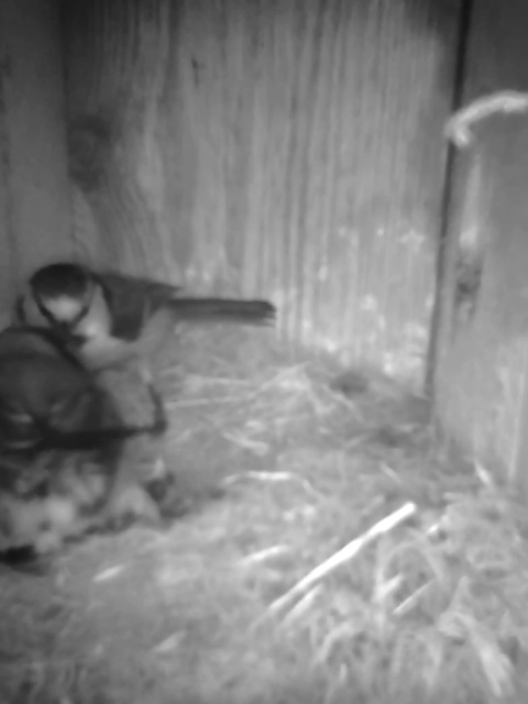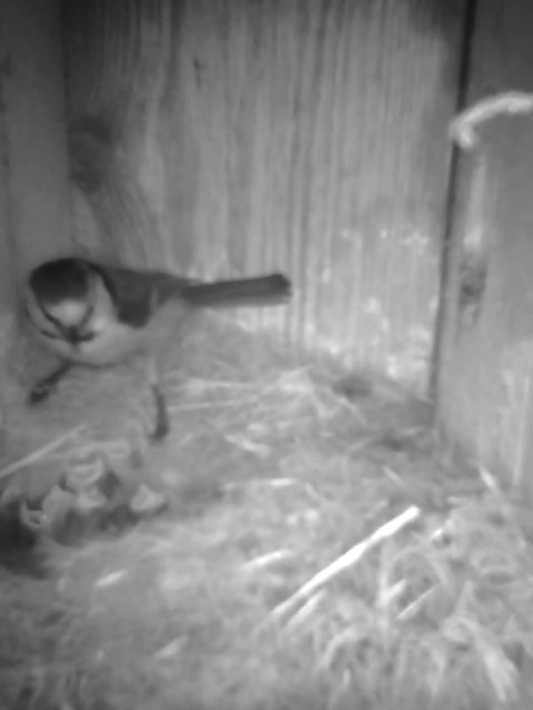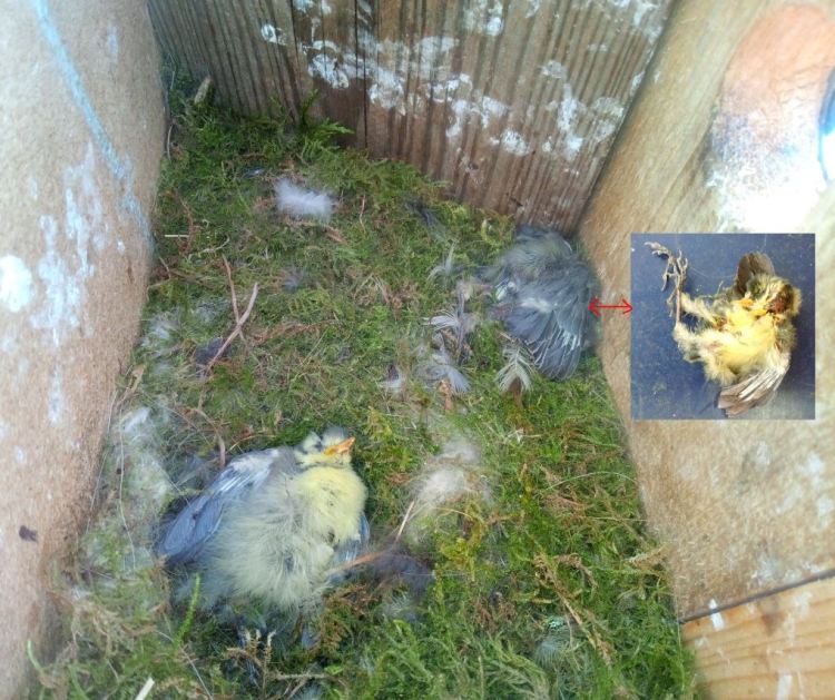 0521 ägg kläckta, två blåmesar i holken